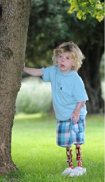 1.25萬英鎊的仿生義肢 此產(chǎn)品為德國奧托博克3R66氣壓可旋轉(zhuǎn)四連桿膝關(guān)節(jié) 重新學會走路。 中新網(wǎng)7月29日電 英國一名3歲男童前年患上腦膜炎,要切除雙腿,最近他裝上1.25萬英鎊的仿生義肢,并重新學會走路。 據(jù)香港文匯報消息,巴頓前年6月發(fā)燒,母親以為小問題沒有求醫(yī),后來病情惡化,包括皮膚出現(xiàn)斑點,這時才送入醫(yī)院,但當時他的嘴唇顏色已經(jīng)變成藍色,被診斷患上腦膜炎,其后更出現(xiàn)敗血癥,視力永久受損。 其42歲母親表示,醫(yī)療人員最初提供的義肢是黑色的,但她說巴頓喜歡紅色,最后裝上了紅色的義肢。他第一件事是致電哥哥去公園,然后大叫:"我們現(xiàn)在可以一同在公園散步了。" 父親默里表示巴頓目前每天仍要接受物理治療,隨身體長高,他每年需要更換3次義肢。